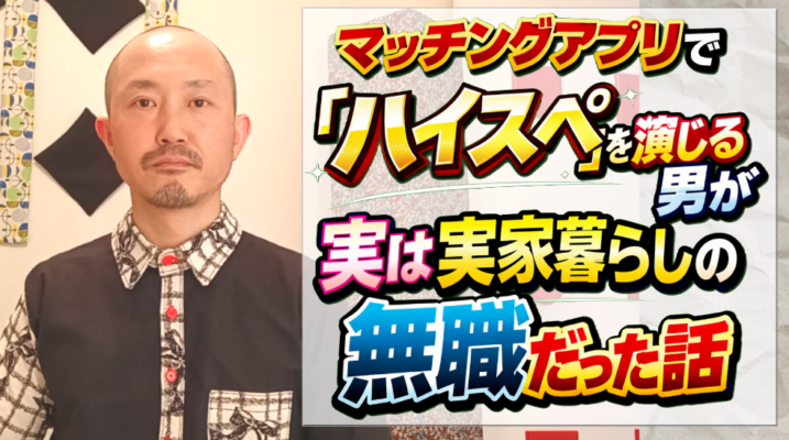 こんにちは、上田基です。 今回は、マッチングアプリで「ハイスペック」を演じる男性が、実は実家暮らしの無職だった……というお話についてお伝えしたいと思います。